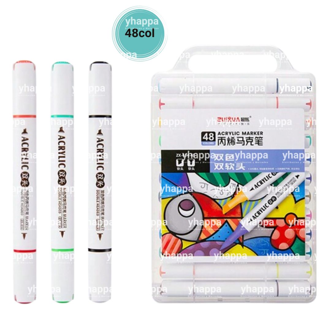 Marcadores Acrílicos Bicolor Zuixua – 48 Colores / Doble Punta – ZX-614-48 / DM137
